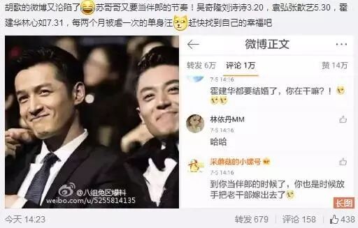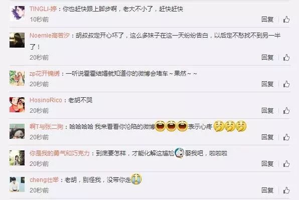 今年胡歌微博已经第三批婚礼观光团了。。。诗诗结婚,袁弘结婚,华哥结婚。。。心疼老胡