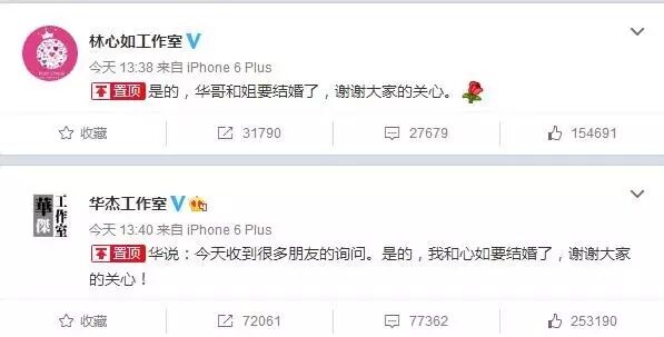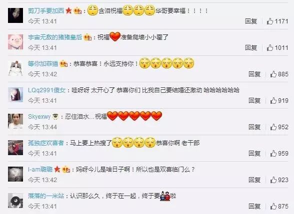 听到两人要结婚的消息,双方粉丝也纷纷在微博下面留言祝福.