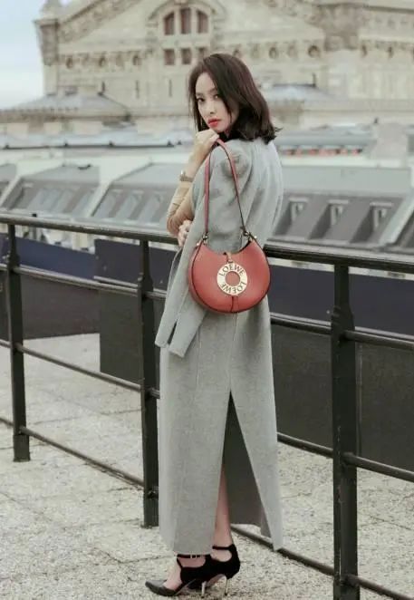 相当高贵而大气的浅灰色大一看起来就是大牌,披在肩上的穿法更有神秘端庄的雍容风格。从后面看上去这套造型简直高雅到一方新境界。内搭宋茜选择了一款浅棕色修身的款式,妩媚中带有几分干练感,也特别有范。