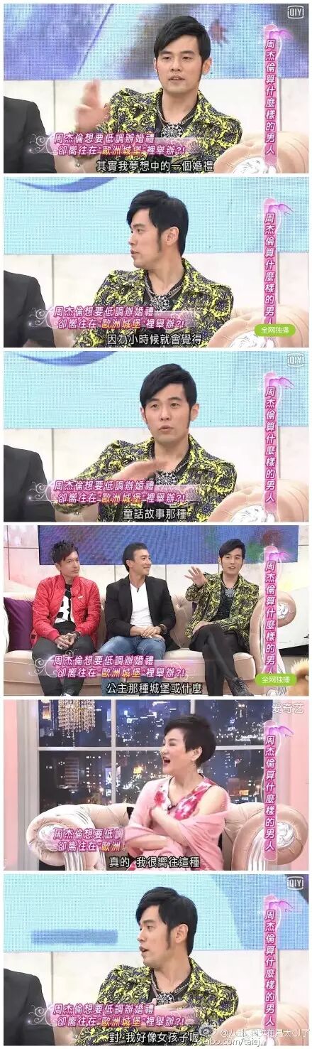 就连婚礼选在古堡办,也是为了圆自己的公主梦。周杰伦坦承,其实会选择在欧洲古堡和昆凌举行婚礼,纯粹是因为从小向往梦想中的婚礼是城堡、公主的童话浪漫风格,说到一半还害羞地表示:“我觉得我好像女孩子哦。”