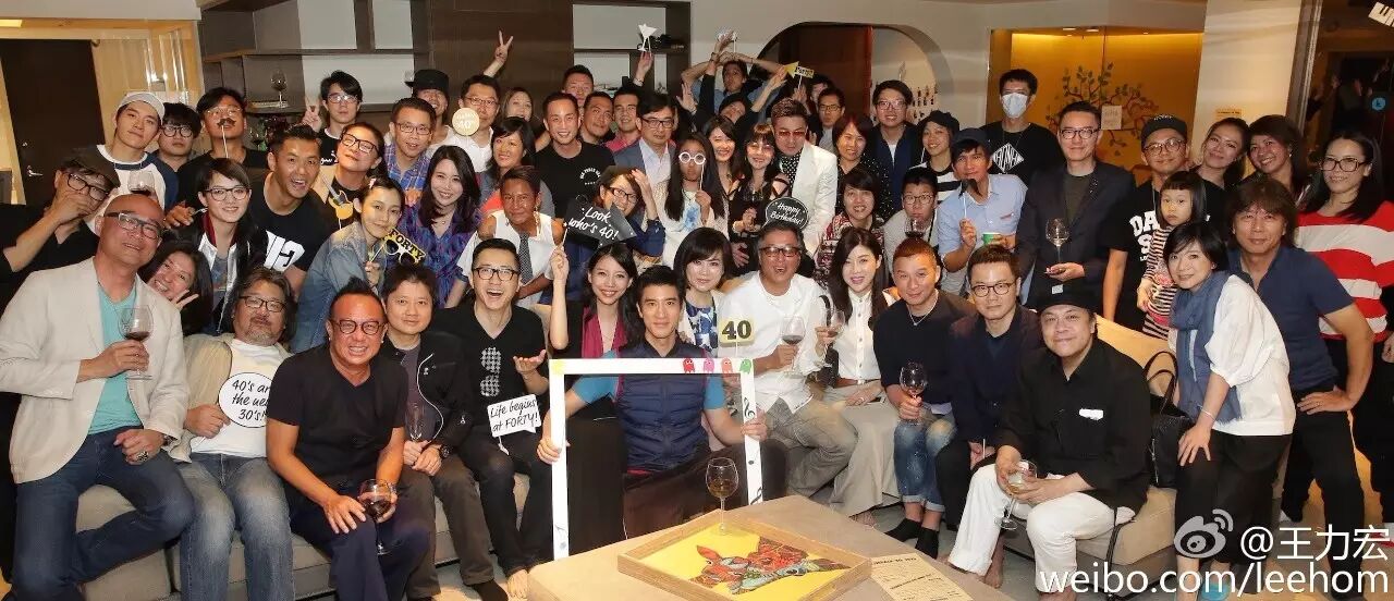 再看看这张大合照,除了王力宏和他老婆靓蕾外,小S夫妇、黑人范范夫妇、哈林、蔡康永、言承旭、房祖名、陶喆等艺人明星都纷纷到场为王力宏庆生。王力宏被拥在人群中间,显得十分开心。