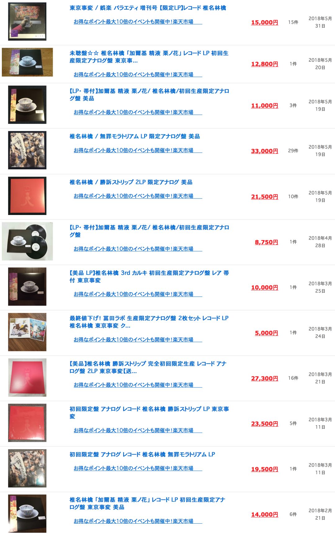 椎名林檎 限定版 LP 黑胶唱片 近6个月成交价格 找尖货 日韩女星 2018-08-13 21:00:29 730 创作不易,用心坚持,欢迎请BaGua喝几杯爱心咖啡!打赏并支持本文 打赏并删除本文 女王大爱!本人最喜爱的日本歌手,没有之一虽说玩黑胶的一般都比较嫌弃日版,但女王的限量版黑胶貌似没得可选就不写什么歌手介绍了有兴趣可以去网上搜搜她的歌试试,推荐“平成风俗”女王的限量版LP很珍贵,非常有收藏价值哦~不知道有没有喜欢的,给同好参考吧 创作不易,用心坚持,欢迎请BaGua喝几杯爱心咖啡!打赏并支持本文 打赏并删除本文 感谢您的支持鼓励,我会继续努力的!文章地址:用户邮箱:打赏金额:USDT 请输入数字点击”去打赏“,即可进行打赏支持本文章哦 椎名林檎 About the Author 找尖货 功能介绍:境外二手市场成交价格查询 Related Posts 椎名林檎 限定版 LP 黑胶唱片 近6个月成交价格 2018-08-13 21:00:29 发表评论