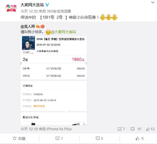 进入李健世界巡演大连站购票页面