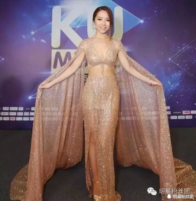 虽然说穿上了女神的新衣,但是我们的邓紫棋同学还是没有放弃内衣外穿和高开叉露大腿的款式,再加上这蚊帐一样的披风(说是金色渔网的,小编我也勉强同意)和君临天下的pose。