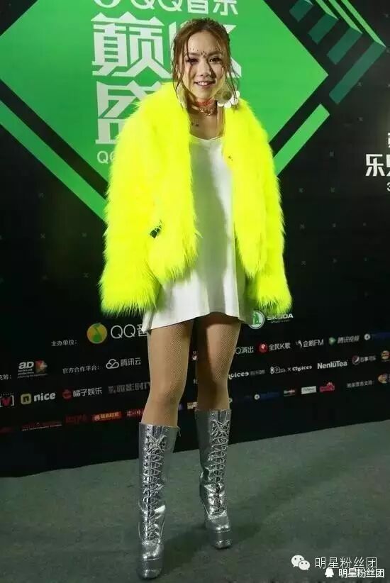 那次邓紫棋也参加了,以一身荧光色的小黄鸡造型亮相的。