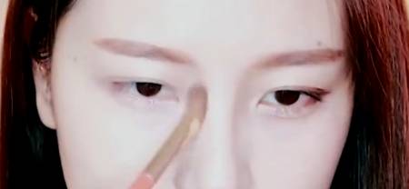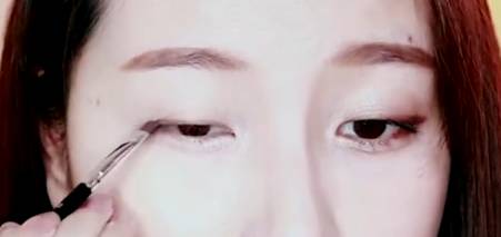 step5:沾取棕色眼影画沿着眼线画一条细细长长的眼线色