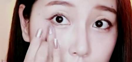 step4:用眼影刷沾取带亮片的颜色画卧蚕