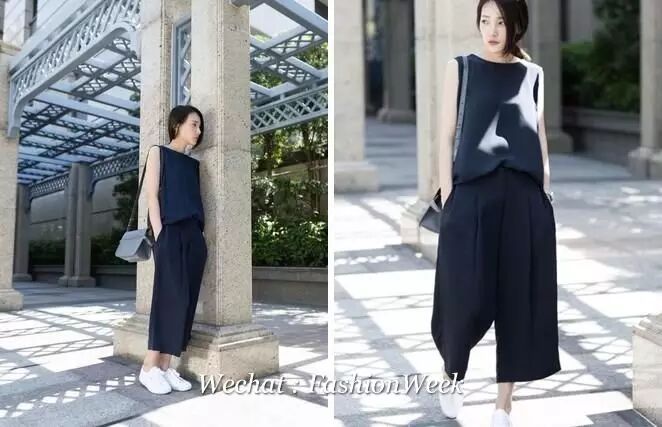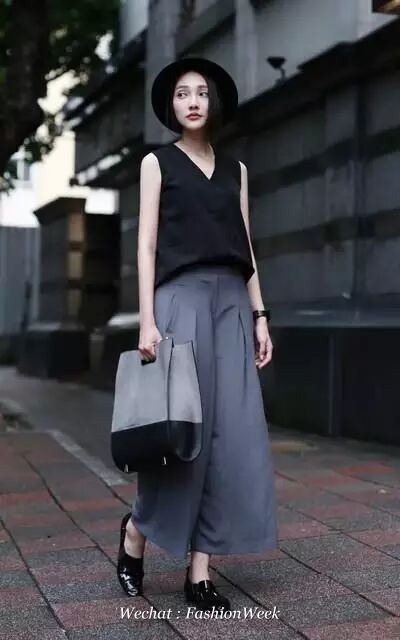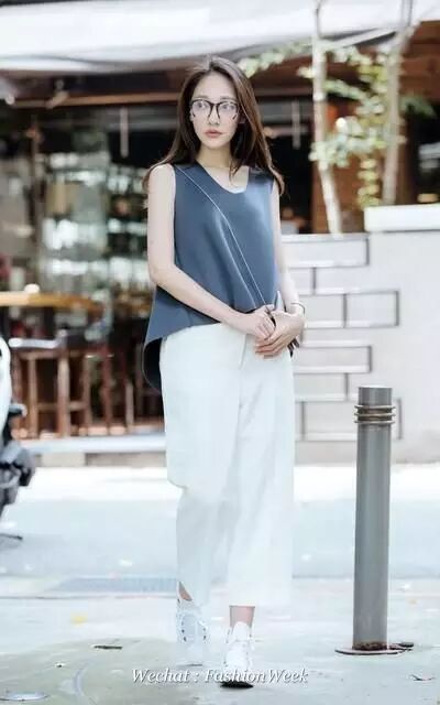 #nude家的灰色不规则背心,这型也是小编的最爱啊。iohll的白色阔腿裤,帆布鞋依然是来自Converse哦。戴起眼镜来好邻家女孩的赶脚啊。