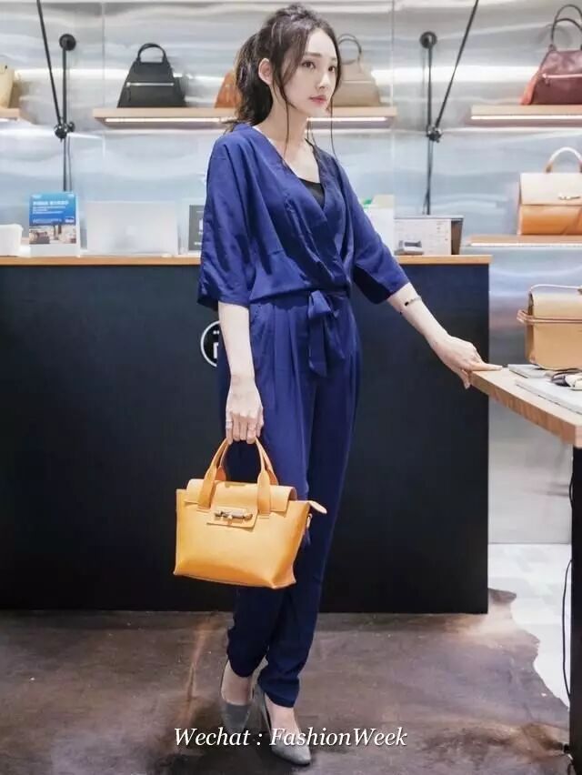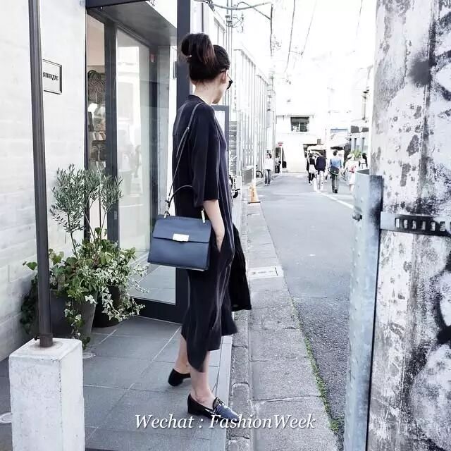 要是不习惯前面的职场御姐look,那么可以找连身裤来压场。款式简洁大方的深蓝色连身裤跟与脚上灰色的高跟鞋超和谐,很适合上班的Smart Casual。当然重点是拎一只知性成熟,但又不会老气的包包啦。