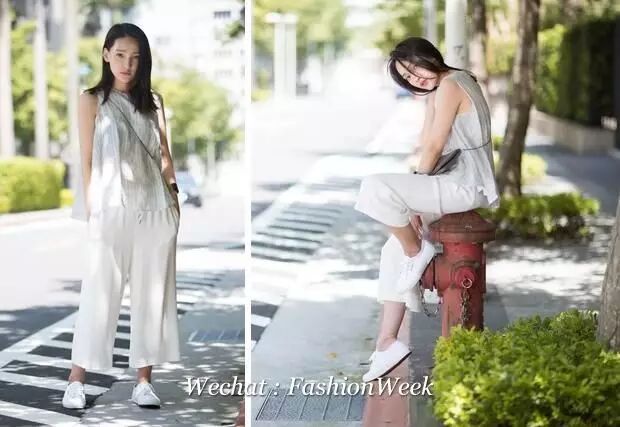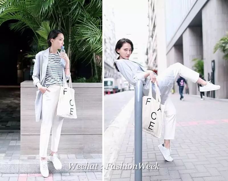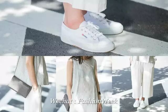 不过就算再怎么变,Superga家的白球鞋都是少不了的。全身纯白装束让清凉度直线上升,再搭配一只轻质的包包,夏日的清新与自然就是介样子哒。