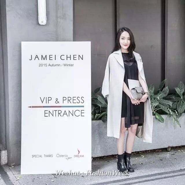 出席JAMEI CHEN的活动自然是穿它家的外披啦。所以说把长外套披起来就是撑起气场的重要“心机”。一席Sketcharound的黑色连身裙冷艳得不行,搭配讲究工艺的#nude家靴子和手包,谁也没你抢镜。