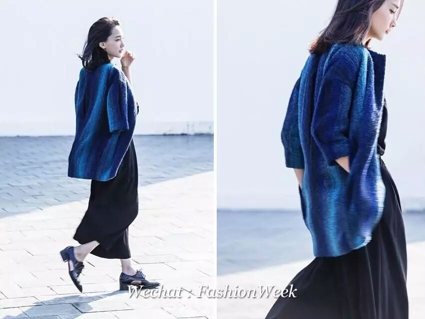 小美很喜欢在镜头发现不一样的自己,拍得了时尚平面,也招架得住high fashion是对她多变的最好形容。小美这身打扮很适合上班。因为职场着装不仅要有正式感,还要穿得舒服,毕竟在办公室一呆就是8小时。这件知性的蓝色图纹羊毛外套来自香港设计师品牌House of V,舒适又自在,内搭不管是长裙还是连身阔腿裤都很有御姐范儿。