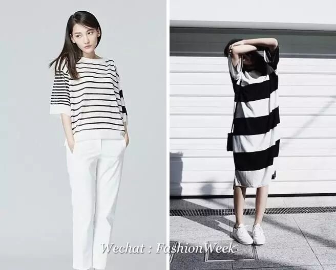 不管粗细,只要是条纹就“照杀”。条纹衫配白色西裤,一个凛冽的眼神真是能帅你一脸。黑白相间的超粗条纹连衣裙搭白球鞋,眨眼又变回了小甜心。