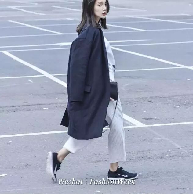 上衣跟裤子都是DOUCHANGLEE的,看来素色始终是王道啊。外披一件H&M的大衣,记得要披起来,像战衣一样才够“呛”啊。小美一直都在告诉我们一个真理:只要你会搭,不蹬恨天高照样能有女王气场,一双H&M的白球鞋就足够了。