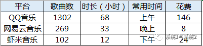 那么我们来看一下我在QQ音乐、网易云音乐、虾米音乐的听歌数据吧: