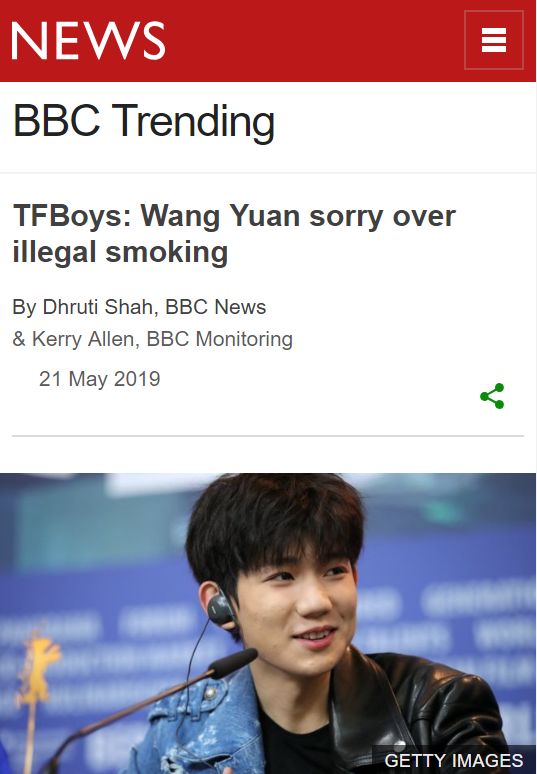 TFboys王源抽烟事件持续霸屏微博热搜和万千追星少女们的朋友圈。BBC也对此次事件进行了报道。抛开八卦,今天的英语头条带你从这篇报道中学习英语。