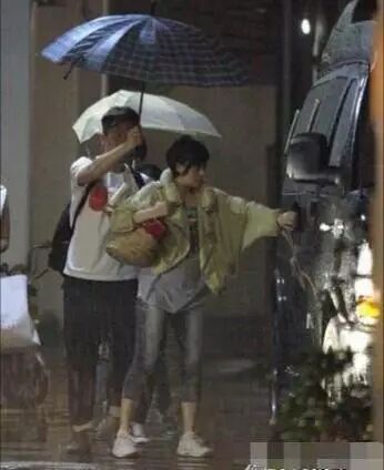 李湘和王岳伦平时不怎么秀恩爱,更多的是看到他们秀娃,但是下雨的时候,王岳伦仅仅搂着李湘↓↓↓