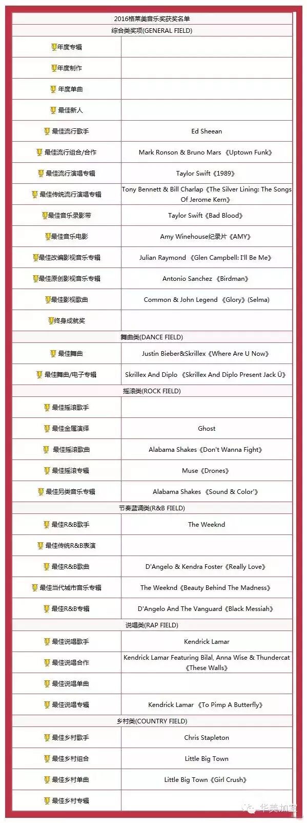 美国当地时间15日晚(北京时间16日上午),2016年第58届格莱美音乐奖落幕。