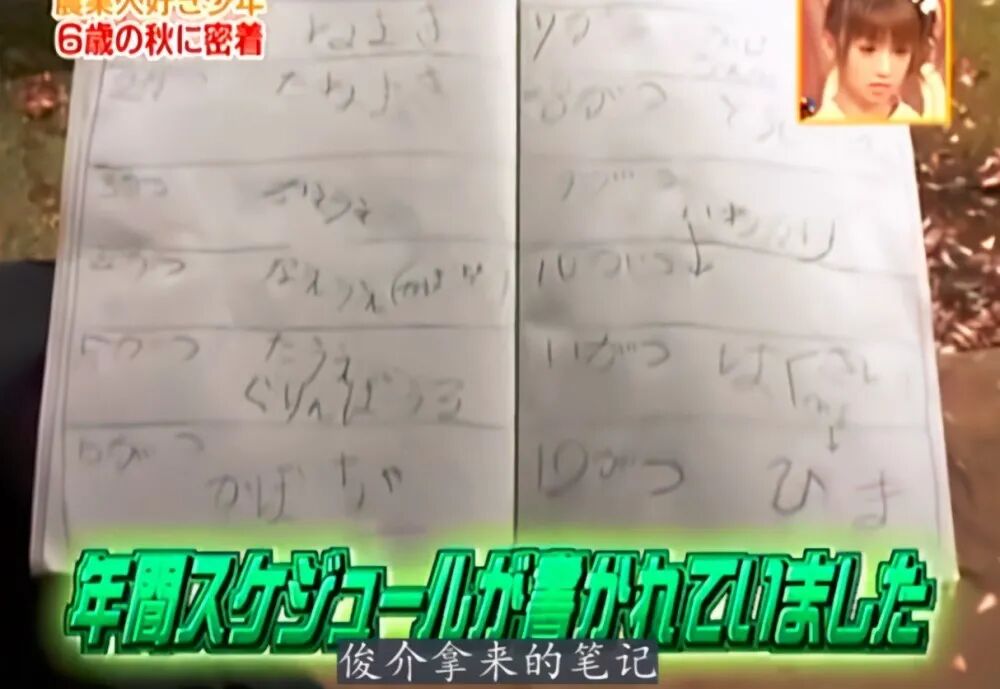 6岁的俊介不只是帮助家里人参与到农业做工中去,还非常有心的准备了一本笔记,里面记录了全年各个作物是什么时间,如何种植,甚至还记录了自己的心得。
