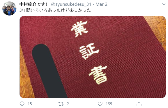 后来,俊介成功拿到了毕业证书,并入职了一家公司。如今他一边上班,一边继续农业。