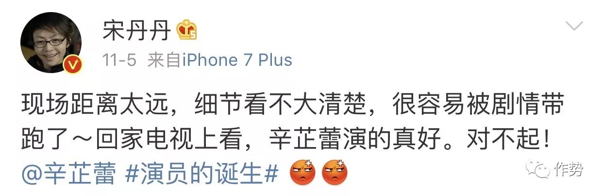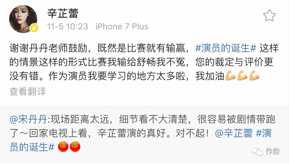 投了她关键出局票的宋丹丹,后来也在微博上坦言因为现场距离太远,有些细节看不清楚,事后肯定了辛芷蕾的表现,宋丹丹道歉#一下子又成为了微博热搜话题。