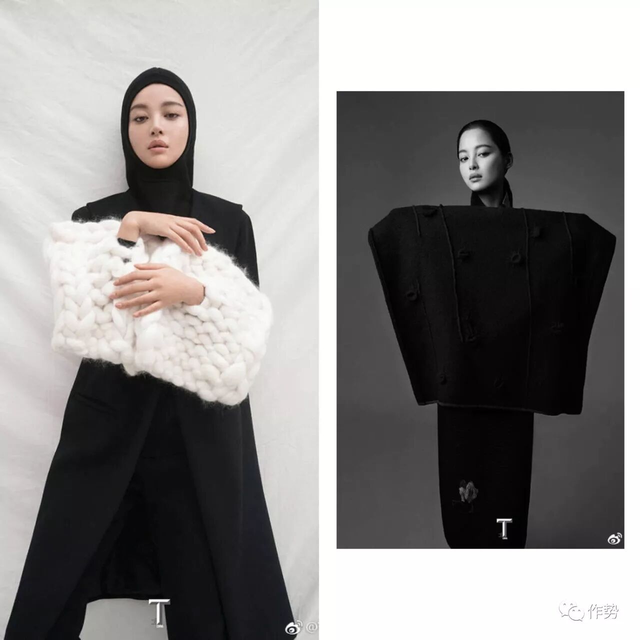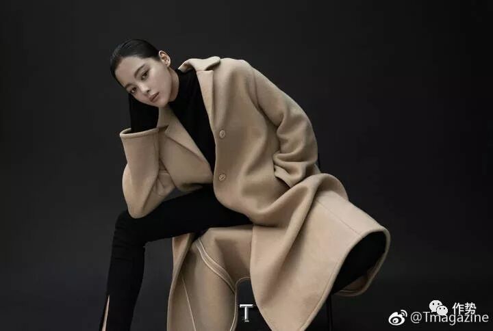 她还为《T Magazine》拍摄了一组棚内纯色背景的时装大片。