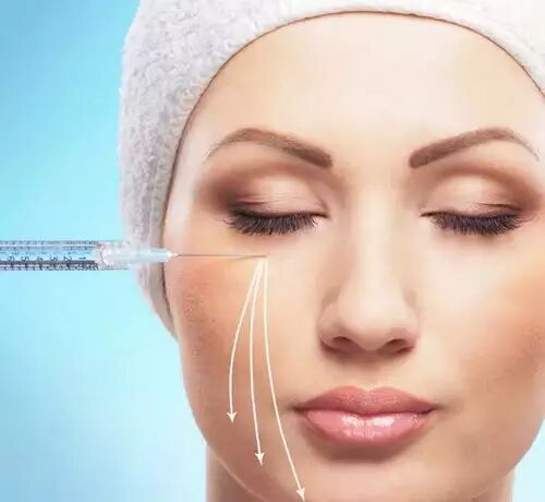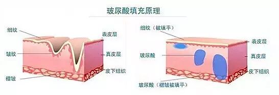 用注射的方法将玻尿酸注射到真皮层或皮下,达到除皱或塑形的效果!如图: