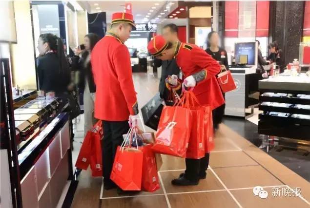 ▲买累了,有30名提袋人员在卖场内为顾客提袋。