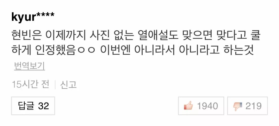 热评第一:玄彬到目前为止就算没有照片曝光,也会爽快地承认恋情,但这次却说不是那肯定就不是了。
