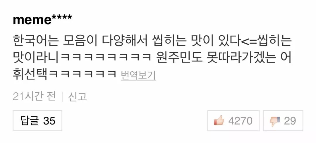 热评第一:因为韩语的元音多种多样所以有嚼头<=有嚼头是什么KKKK连本土人都跟不上的词汇选择KKKK