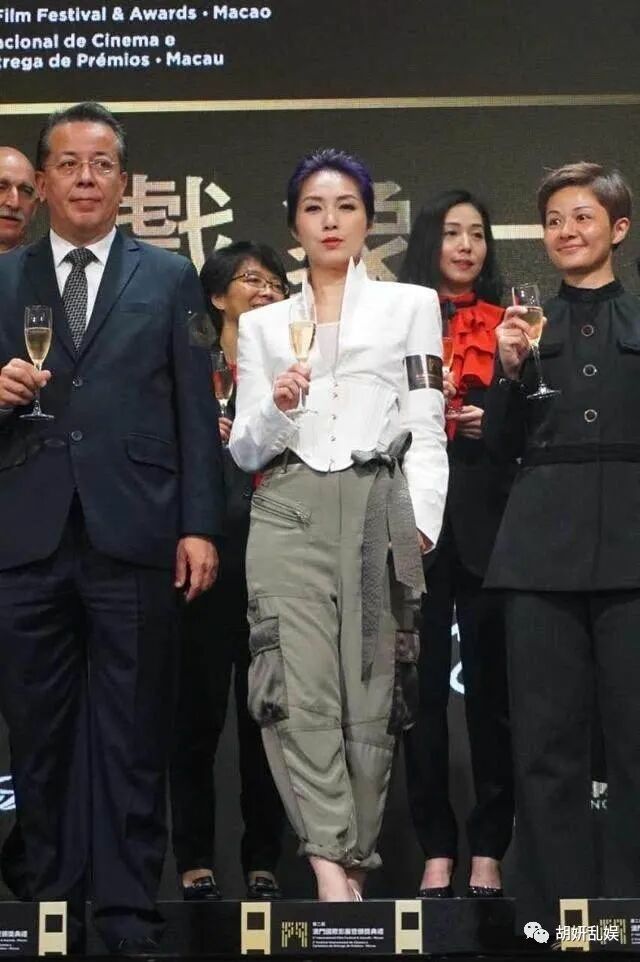 一件脏粉色的羽毛裙+银灰色的绑带高跟鞋,性感的香肩锁骨和大美腿尽显,后背短发,低头垂眸的陈慧琳端庄优雅,格外吸引人的目光!