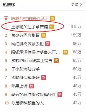 最近因为王思聪关注章若楠冲到热搜第一,让网友们好奇究竟是什么神仙颜值才能让“国民老公”也关注?