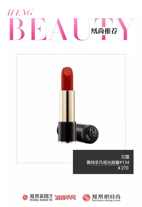 凰尚推荐:颜色超级正的枫叶红色,哑光的质地上嘴很有质感,很复古的红,薄涂厚涂都能hold住,重点是还十分显白。
