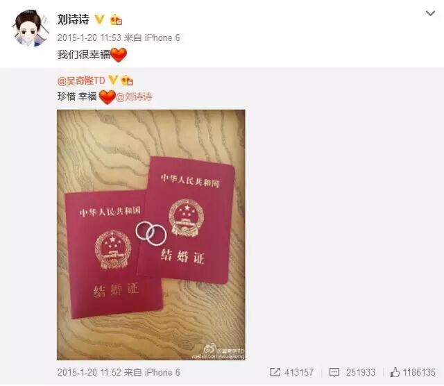 2015年1月20日,两人领证!