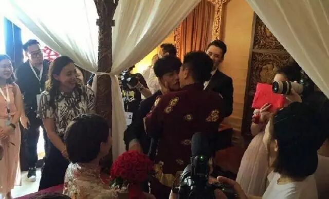 带着伴郎来敲门啦!现场小虎队不仅重现经典《青苹果乐园》《爱》,新郎还现场激吻伴郎!这。。。为了把刘诗诗娶回家,兄弟们也是蛮拼的!