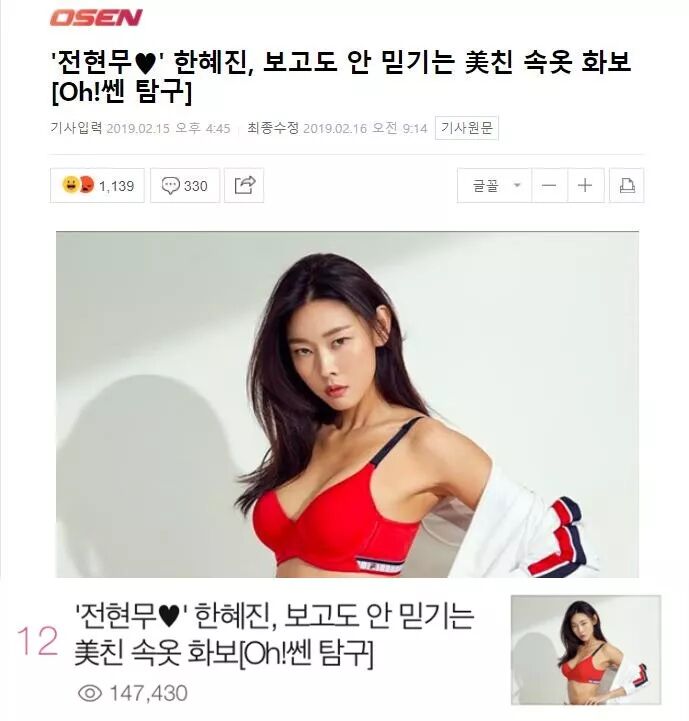 (韩惠珍和全炫茂在2018年2月公开恋情,此前传出分手,双方所属社曾多次辟谣。韩惠珍15日在自己的SNS上传了自己拍摄的画报。因记者在新闻标强行加上全炫茂的名字,引起网友争议。)