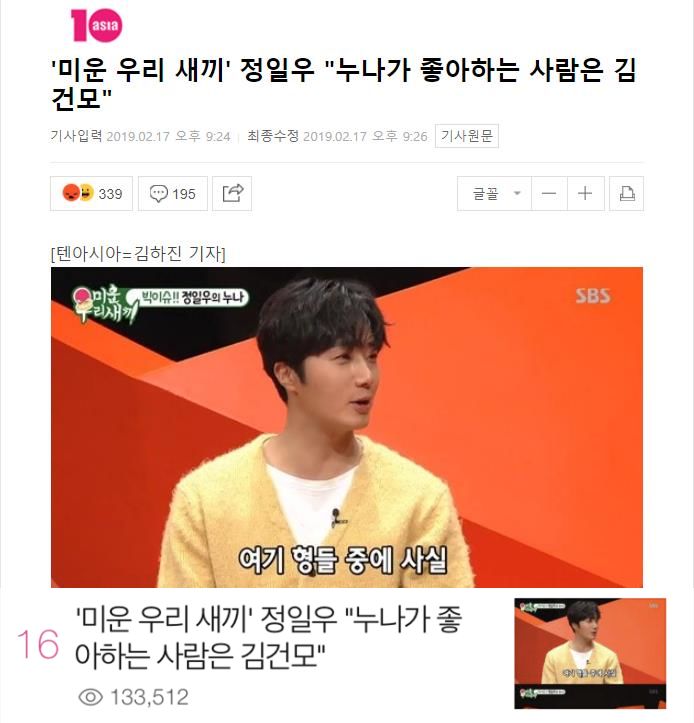 (《我家熊孩子》是一档关注孩子和家长之间问题的节目,由嘉宾出演,母亲观察其生活,由金建模、金钟国、朴秀洪、李尚敏等人出演。本期录制室嘉宾丁一宇透露节目中姐姐最喜欢的是金建模)