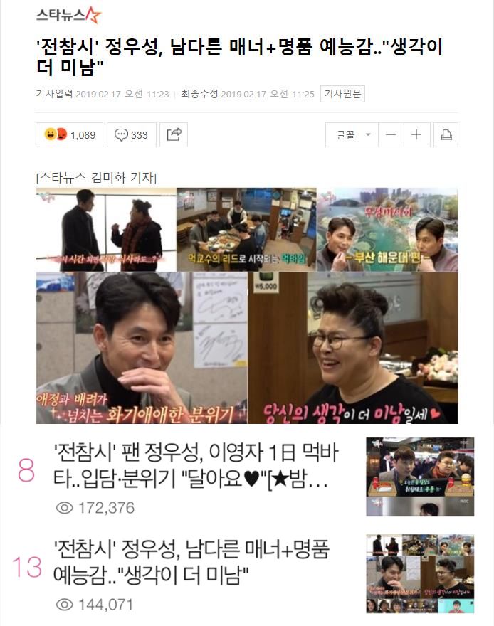 (《全知干预视角》是一档接受艺人经纪人“举报”后观察明星日常生活的综艺节目。16日播出的节目中,李英子接受郑雨盛电影试映会和用餐的邀请,和郑雨盛一起度过了一段时间,节目中郑雨盛表现出了不一般的风度,备受好评)