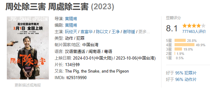 谁也没想到,今年3月1日在大陆公映后,《周处除三害》以生猛的姿态给了沉闷的贺岁档尾一记重拳。