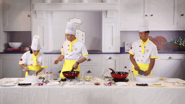 《明星学厨记》学员女神林源、男神毛方圆认真听邵大师讲课