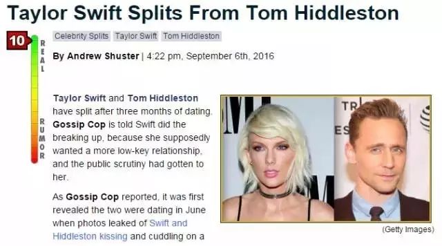 权威八卦辟谣网站GossipCop,已经给了两人分手的新闻,10分的可信度!
