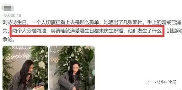 有不少网友表示,刘诗诗过生日看起来好孤单,夫妻分居异地,妻子生日作为丈夫的吴奇隆都没有祝妻子生日快乐,两人究竟怎么了?