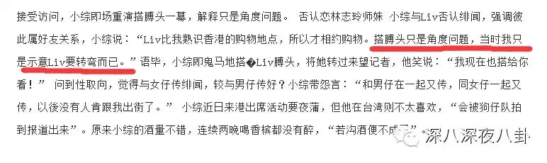 被拍之后立即就澄清不是情侣关系,还说搭肩膀就是角度问题,说是示意对方要转弯。。