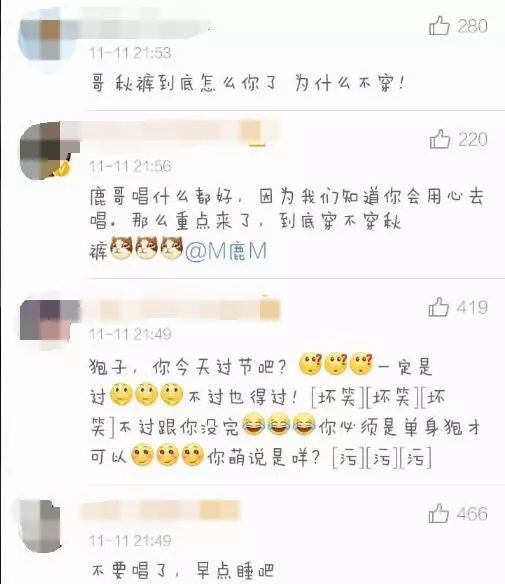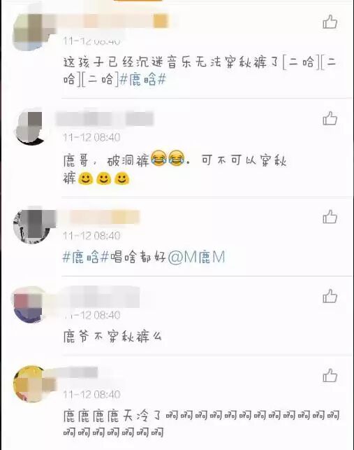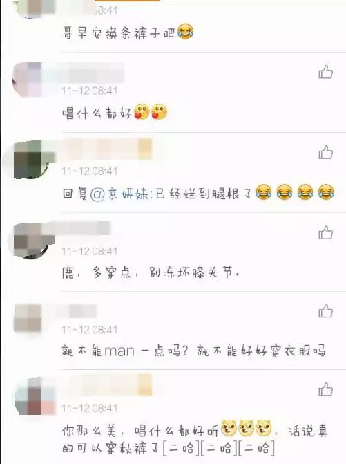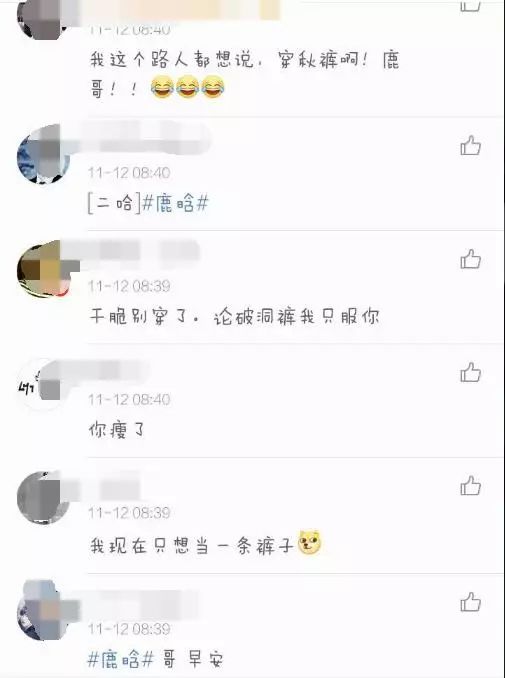 大家再问,为什么不穿秋裤,这样不好,对身体不好,鹿晗得多注意啊,你看,都引起全民吐槽了,其实大家都是关心你,要不要加条秋裤?