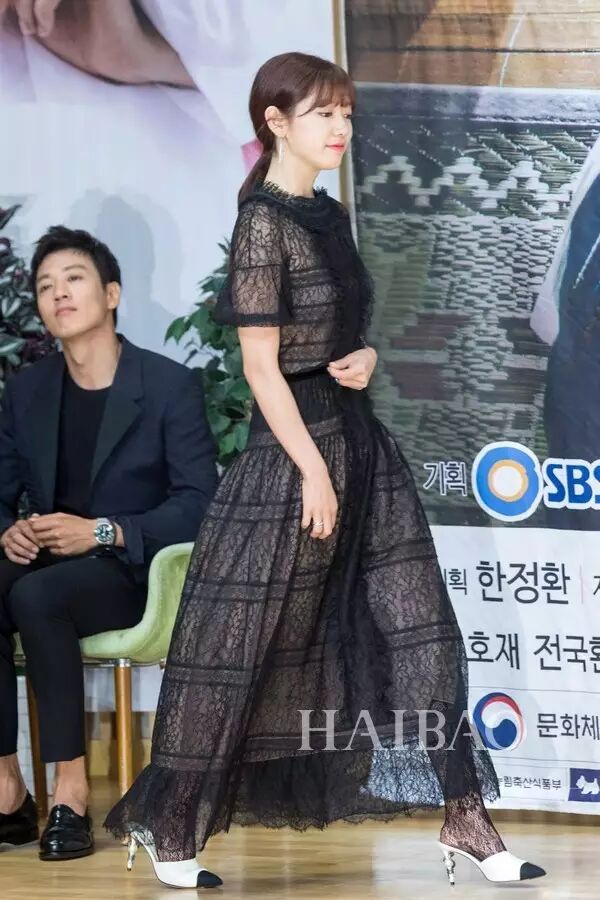 不过瘦非万能,至少它未能帮助朴信惠撑起一条拖沓的长裙与复杂的搭配!朴MM《Doctors》制作发布会这身蕾丝裙Look,只看上身清透美腻,下半身就累赘了!