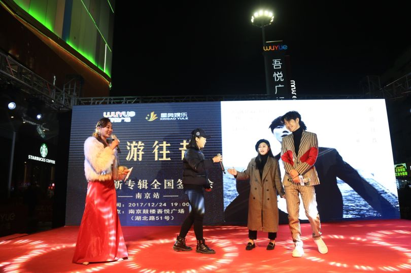 当晚7点,王晰身着深色条纹西装现身南京鼓楼吾悦广场,以专辑中最具代表性、同时也是专辑同名主打的歌曲《重游往昔》开场,被里三层外三层包围着的舞台顿时炸开了锅,现场观众的热情将圣诞夜前夕的气氛彻底点燃!