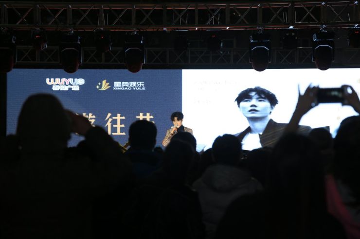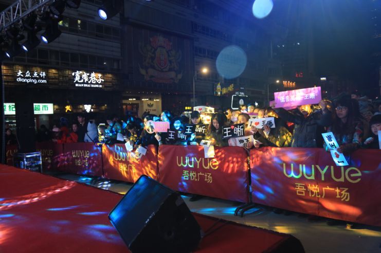 夜晚的天气非常寒冷,想必站了一个多小时的王晰也非常冷了,本次的签售环节安排在了室内,王晰在保安的维护下进入内场小舞台等待粉丝入场签名。