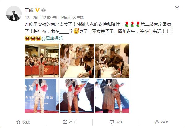 不只是新闻报道,第二天的王晰还发了微博表示开心,并预告了遂宁站签唱会活动。