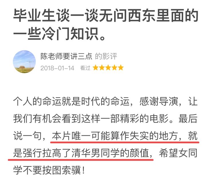 孜孜以求的导演和演员、坚持处女座精神的服道化、上下一心的学霸作风,如此剧组创作出的《无问西东》不仅普通观众叫好,还获得了清华er的广泛认可,同学们纷纷表示电影拍得够真实够良心,唯一失真的可能是清华学生的颜值…