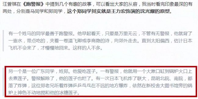 另外电影里那些被网友怀疑“很扯”的剧情,比如沈光耀跑警报、学生顶着松针上课等,都能在汪曾祺先生的散文里找到对应。